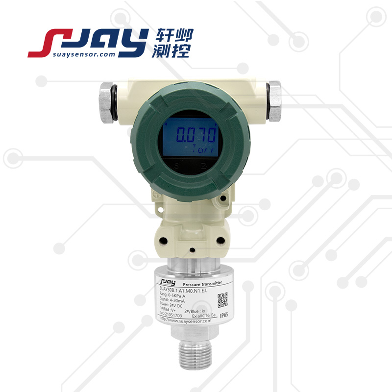 SUAY30 | -100KPa~0 …10KPa ...7MPa | 4:±0.1%FS 2:±0.25%FS 1:±0.5%FS | A1:4-20mA V1:0-5V V2:1-5V V3:0-10V D:RS485 V0:定制 | M1:M20*1.5 M2:G1/4 M6:KF16 可選 M3:G1/2, M7:KF25 M0:定制 | N1:直出2米 N2:赫斯曼插頭 N3:航空插頭 | S:抗干擾 L:顯示 E:本安防爆 |